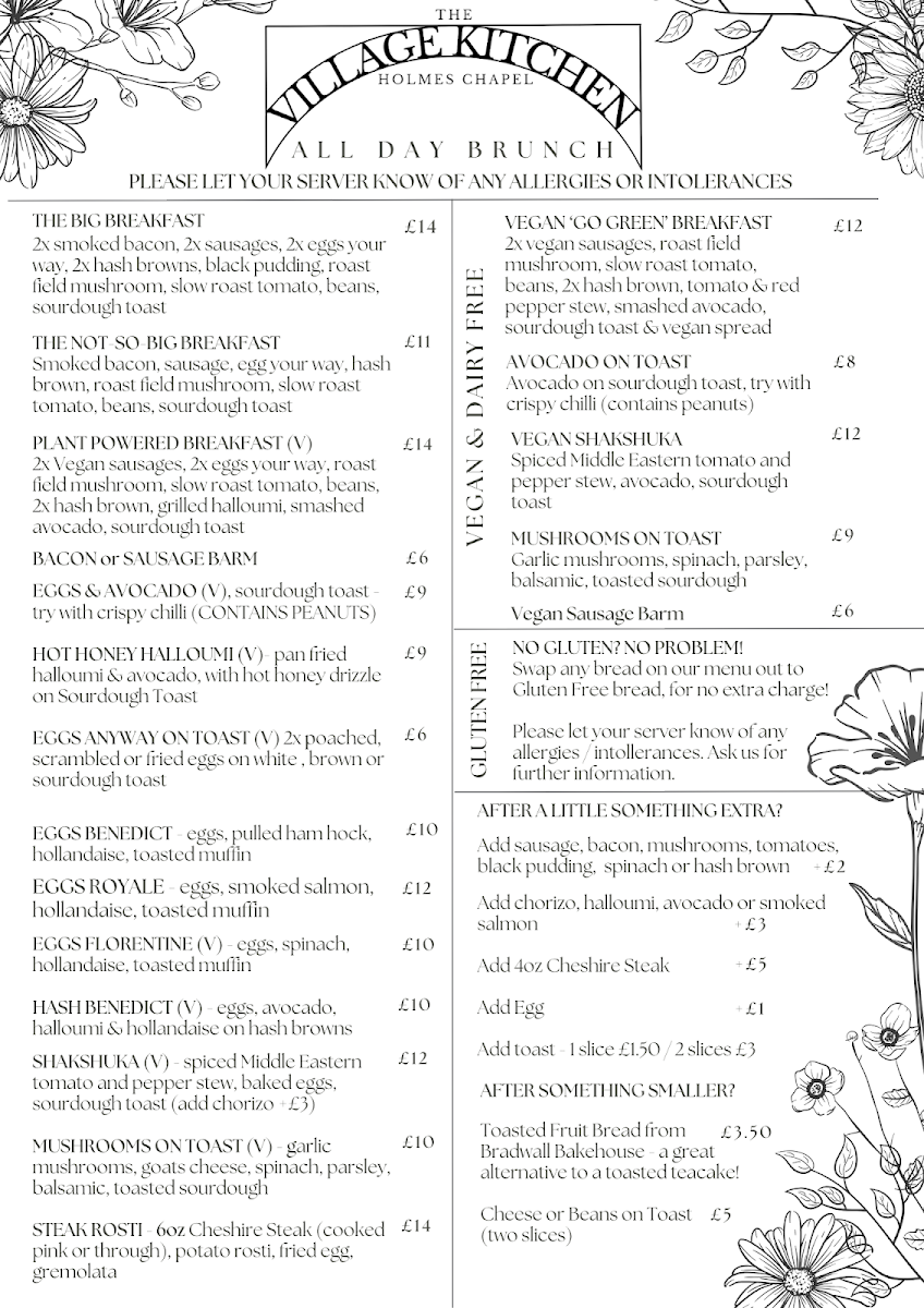 Welcome to The Village Kitchen, Holmes Chapel, a delightful café nestled in the heart of Holmes Chapel. This charming eatery offers a diverse menu that caters to all tastes, including a vibrant main menu, a satisfying lunch selection, and options for kids. The highlights of the menu reveal a commitment to quality and creativity. Customers rave about the incredible chicken burger and the delectable mushroom on toast, with the latter available in a vegan option.